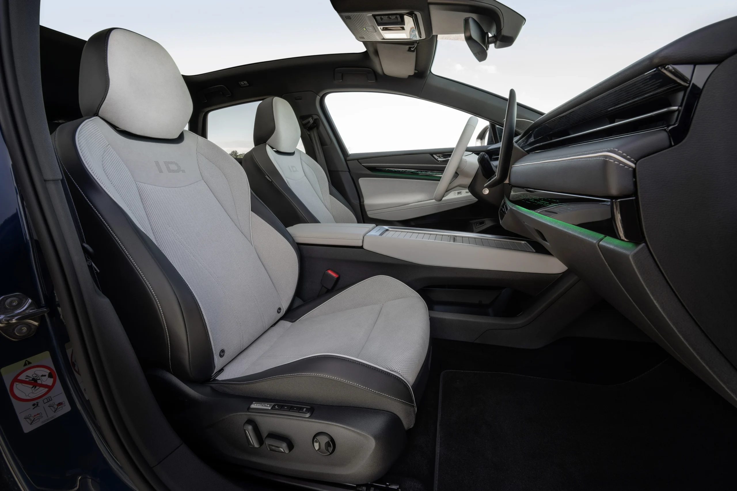 ID.7 ofron një eksperiencë të paharrueshme udhëtimi, ku komoditeti dhe teknologjia janë të bashkuara për të krijuar një atmosferë luksoze dhe inovative. Interieri është e dizajnuar me materialet më të shkëlqyera, që ofrojnë një ambient të këndshëm dhe të sofistikuar. Dritat e ambientit dhe hapësira e madhe për pasagjerët e bëjnë çdo udhëtim të rehatshëm dhe relaksues. Timoni multifunksional dhe paneli i komandave me ekranin e madh dhe intuitiv sigurojnë akses të shpejtë në funksionet e nevojshme. Sistemi i klimës automatik, ulëset me ngrohje dhe opsionet e masazhit janë disa nga detajet që e bëjnë këtë veturë të jashtëzakonshme.