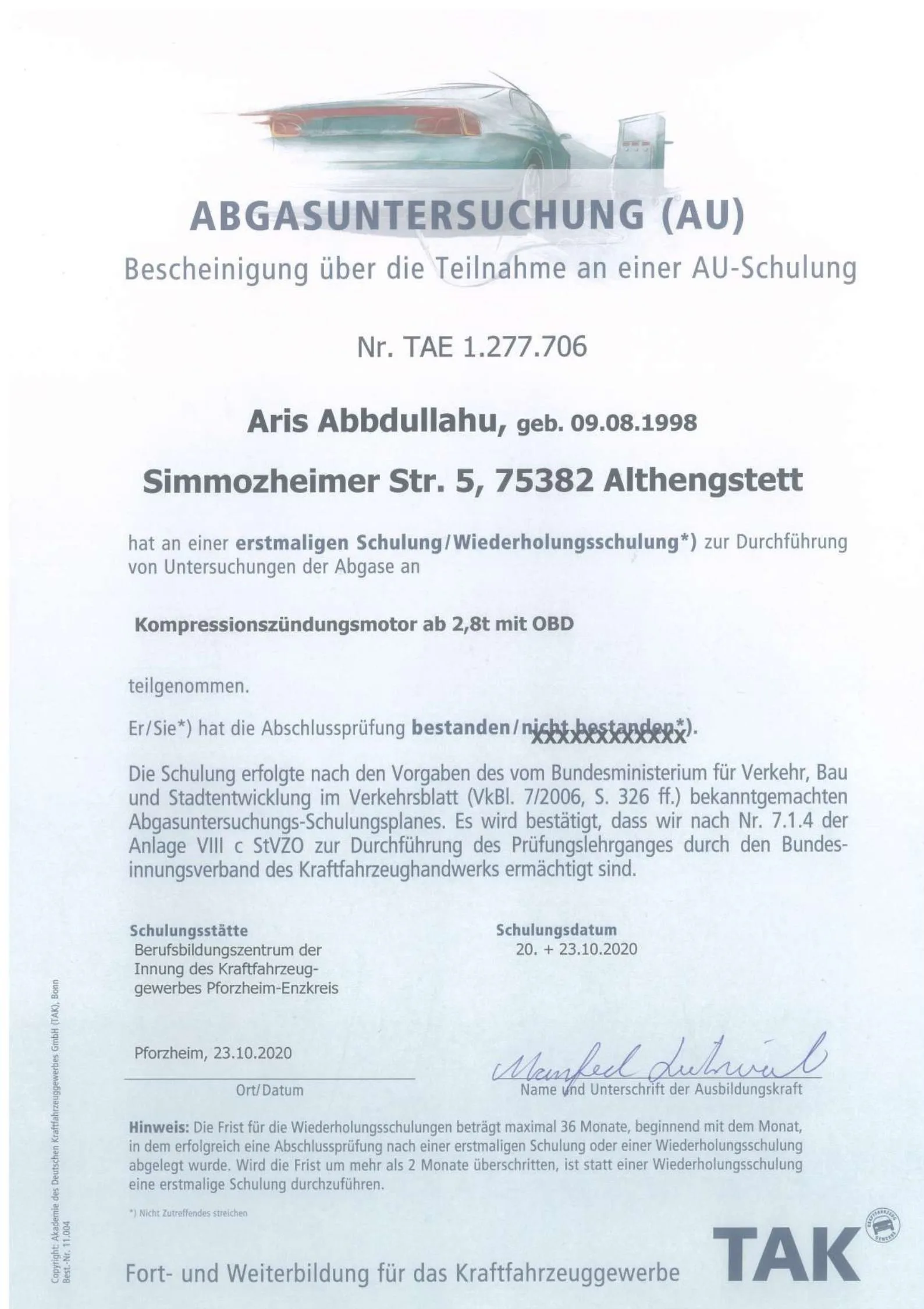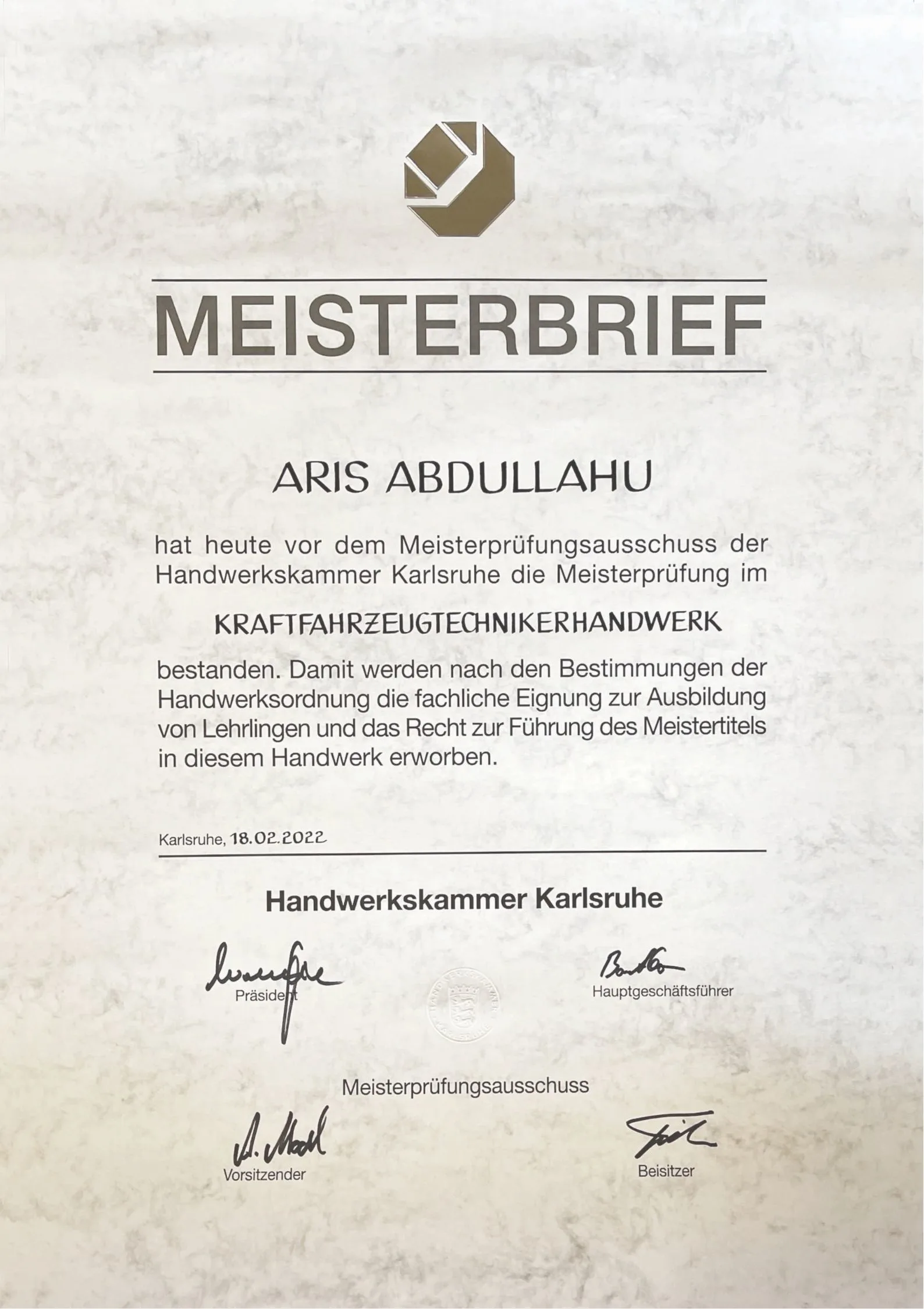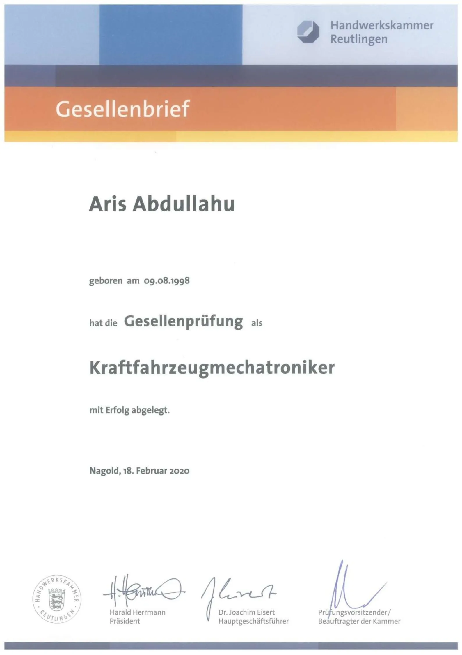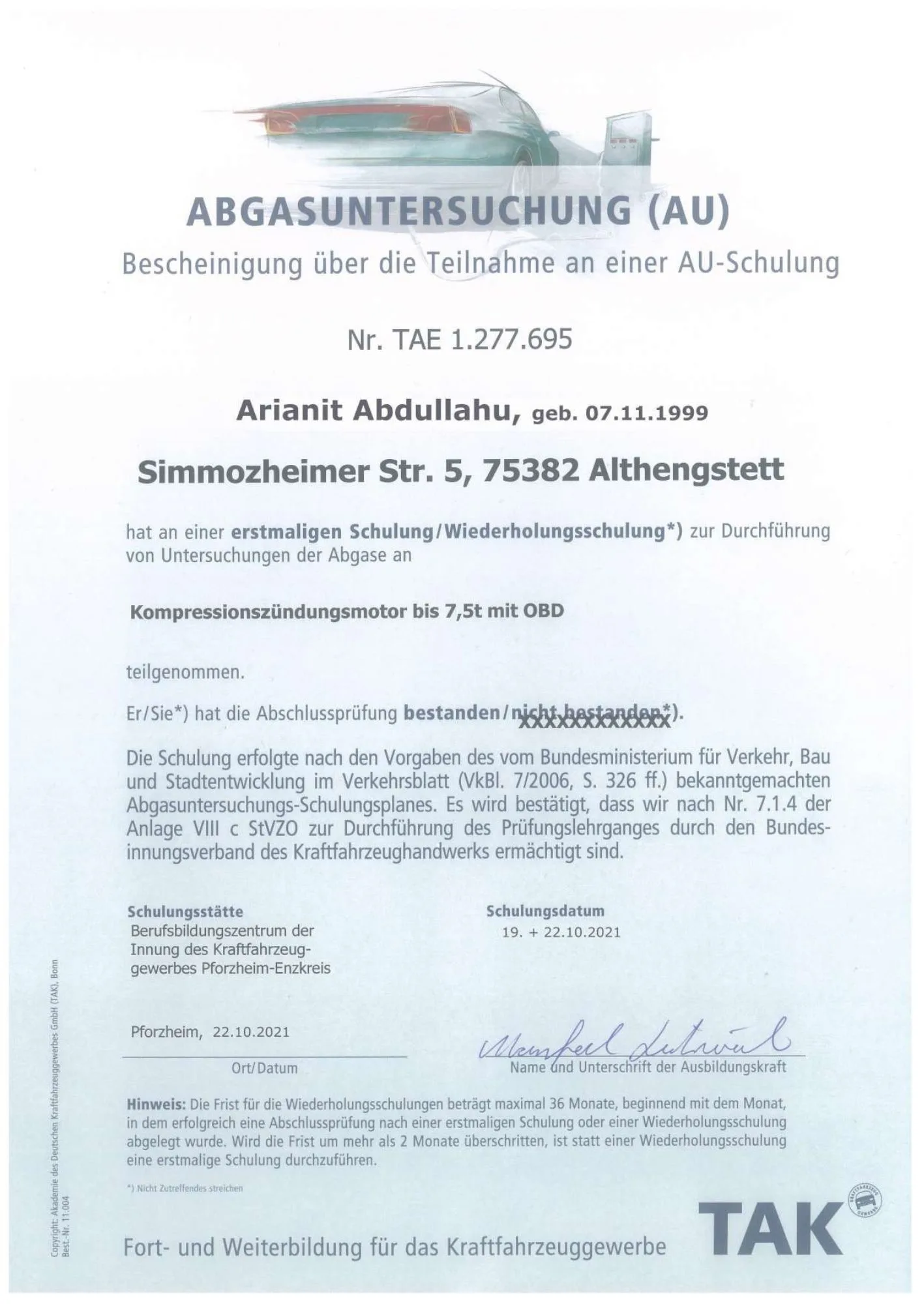 Me rritjen e kërkesave së veturave elektrike, Baki Automobile është krenar të jetë i vetmi në Kosovë i çertifikuar nga Volkswagen Bildungsinstitut Zwickau i Gjermanisë për automjetet elektrike, hibride elektronike dhe mekanike për markat Volkswagen, Audi, Škoda, SEAT dhe Volkswagen Komerciale, duke na pozicionuar si lider në këtë fushë.